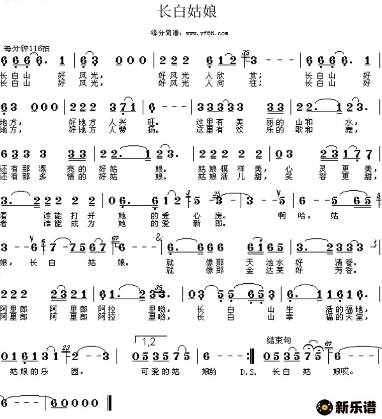 吉林民歌演唱的长白姑娘歌词,长白姑娘简谱.
