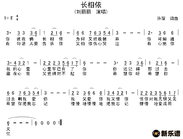 刘丽丽演唱的长相依歌词,长相依简谱.