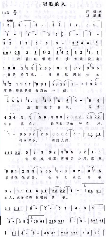 演唱的唱歌的人歌词,唱歌的人简谱.