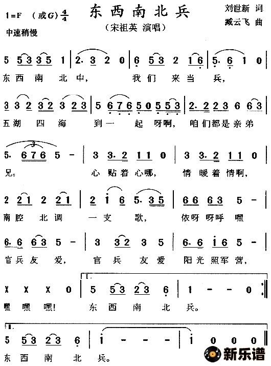 宋祖英演唱的东西南北兵歌词,东西南北兵简谱.