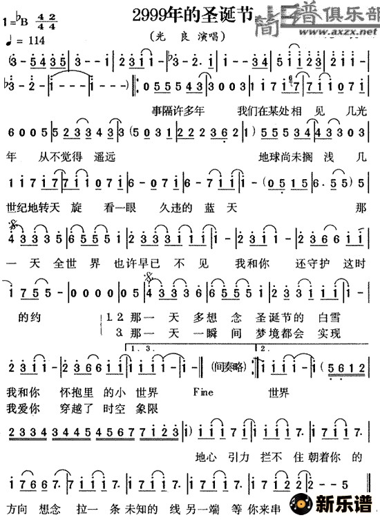 > 二九九九年的圣诞节简谱