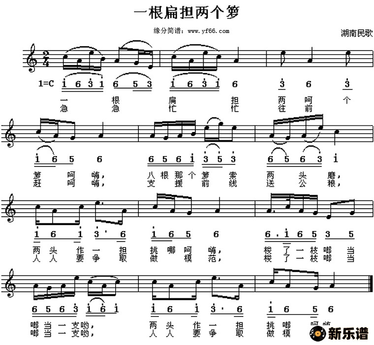 湖南民歌演唱的一根扁担两个箩歌词,一根扁担两个箩简谱.