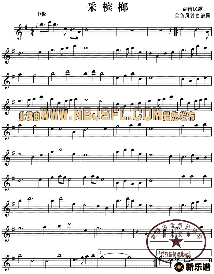 演唱的采槟榔(湖南民歌)歌词,采槟榔(湖南民歌)简谱.