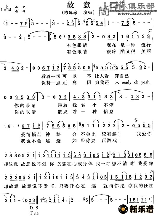 陈冠希演唱的故意歌词,故意简谱.