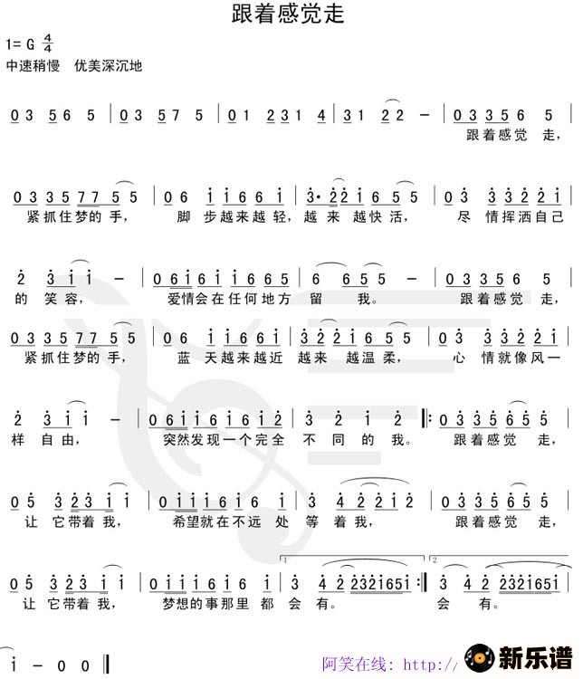演唱的跟着感觉走歌词,跟着感觉走简谱.