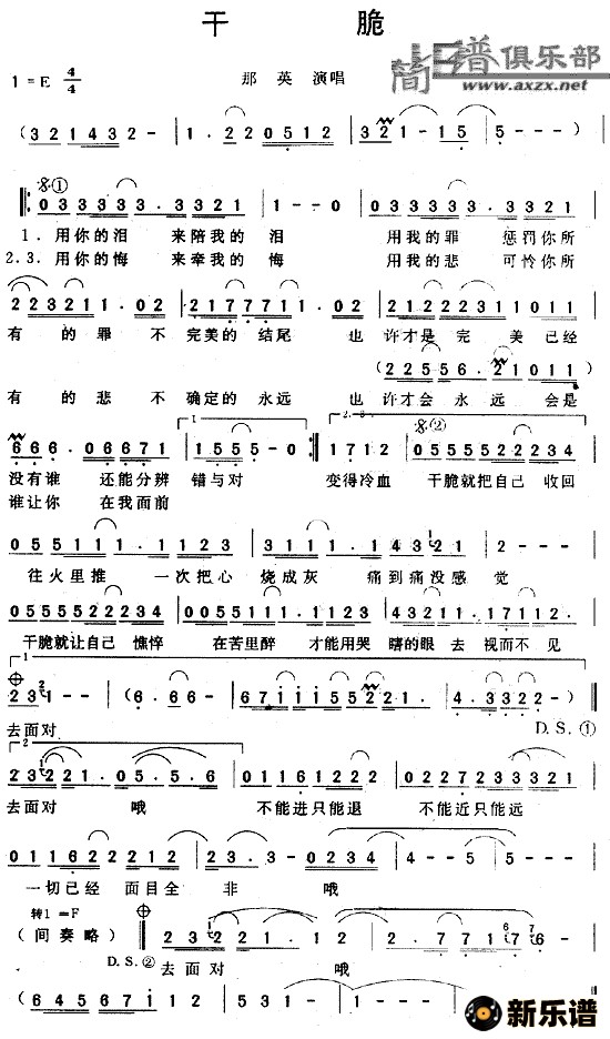 干脆/那英 相关曲谱