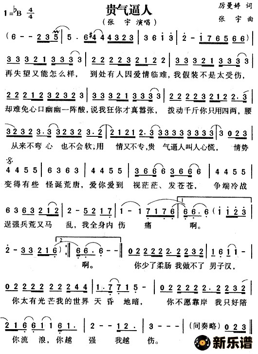 张宇演唱的贵气逼人1歌词,贵气逼人1简谱.