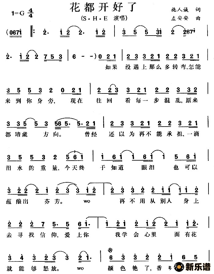 S.H.E演唱的花都开好了歌词,花都开好了简谱.