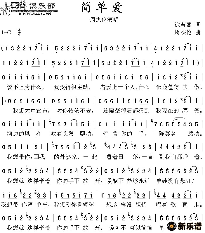 周杰伦演唱的简单爱歌词,简单爱简谱.