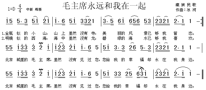 演唱的毛主席永远和我在一起(藏族民歌)歌词,毛主席永远和我在一起(藏族民歌)简谱.