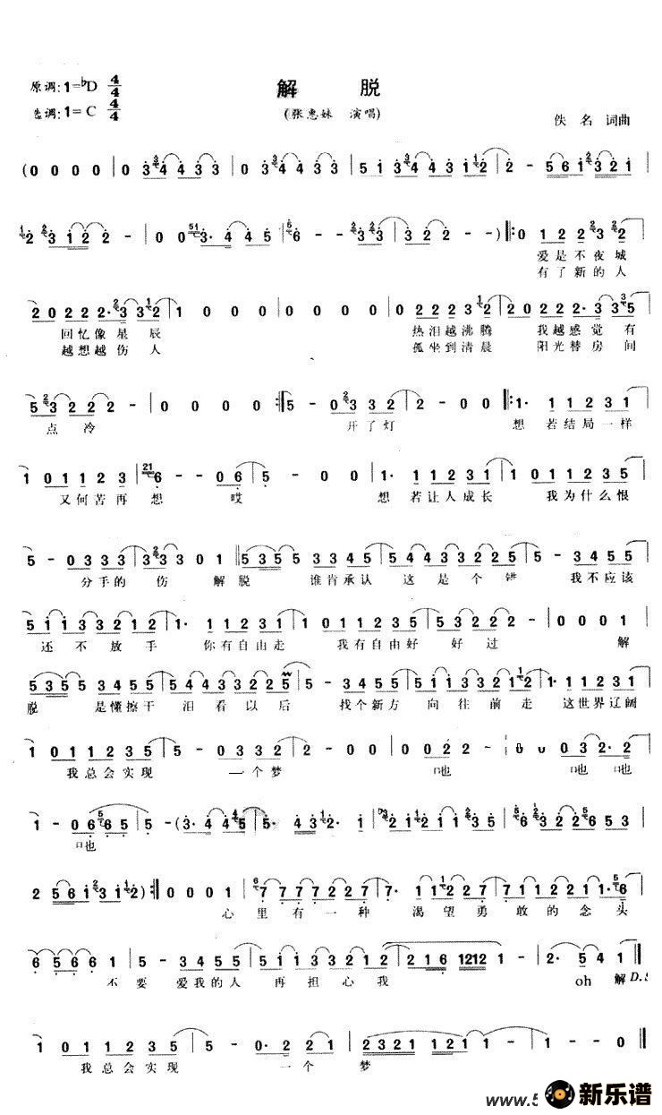 《解脱》简谱 张惠妹
