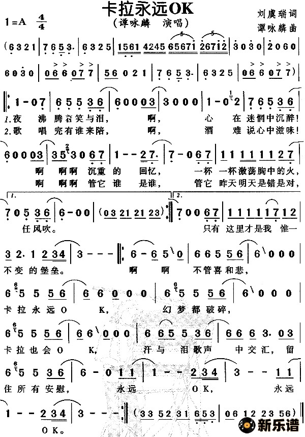 谭咏麟演唱的卡拉永远OK歌词,卡拉永远OK简谱.