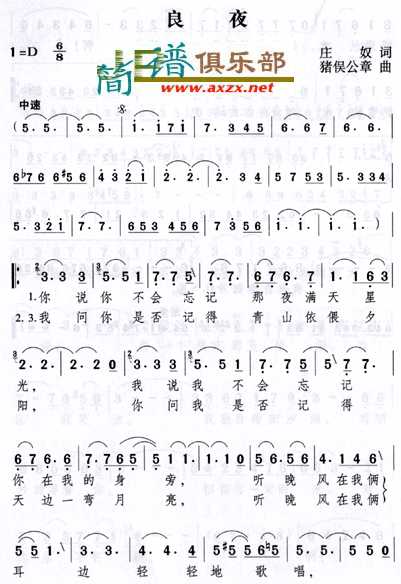 演唱的良夜歌词,良夜简谱.