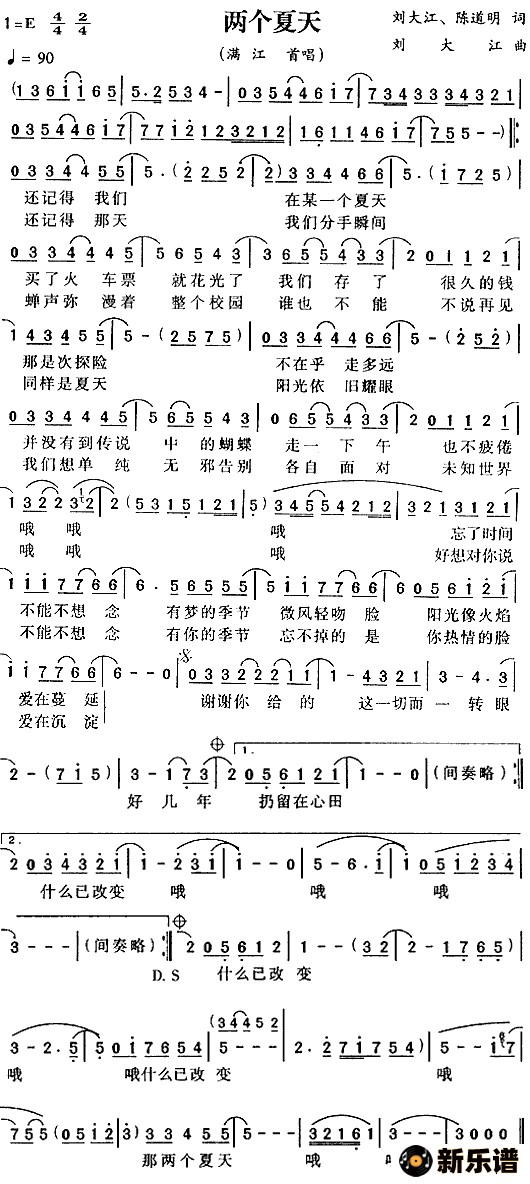 《两个夏天》简谱 满江