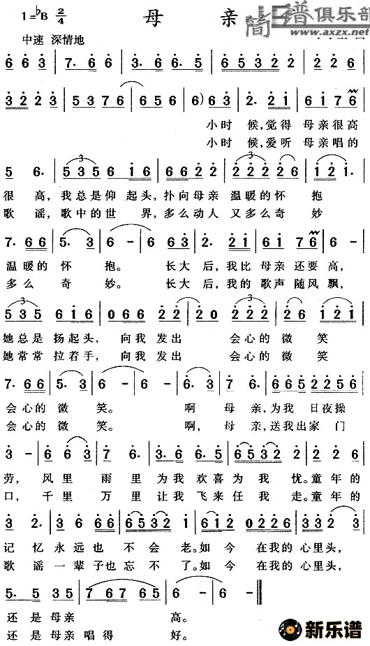 > 母亲简谱
