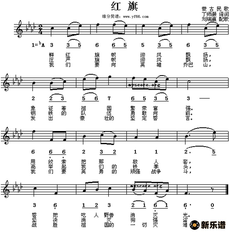 《红旗》简谱 蒙古民歌