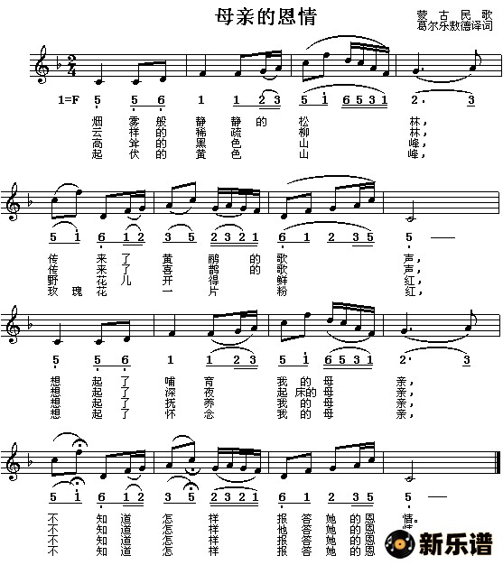演唱的母亲的恩情(蒙古民歌)歌词,母亲的恩情(蒙古民歌)简谱.
