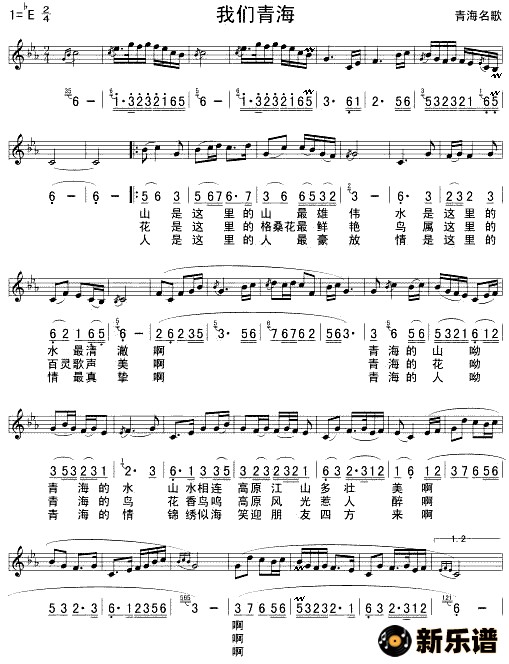 演唱的我们青海(五线谱/简谱对照)歌词,我们青海(五线谱/简谱对照)简谱.