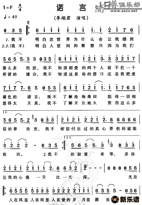 《诺言》简谱 李翊君