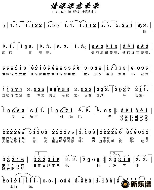 赵薇演唱的情深深雨蒙蒙歌词,情深深雨蒙蒙简谱.