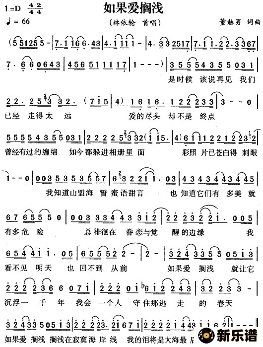 林依伦演唱的如果爱搁浅歌词,如果爱搁浅简谱.