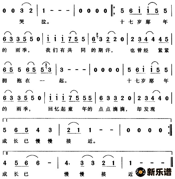 演唱的十七岁的雨季2歌词,十七岁的雨季2简谱.