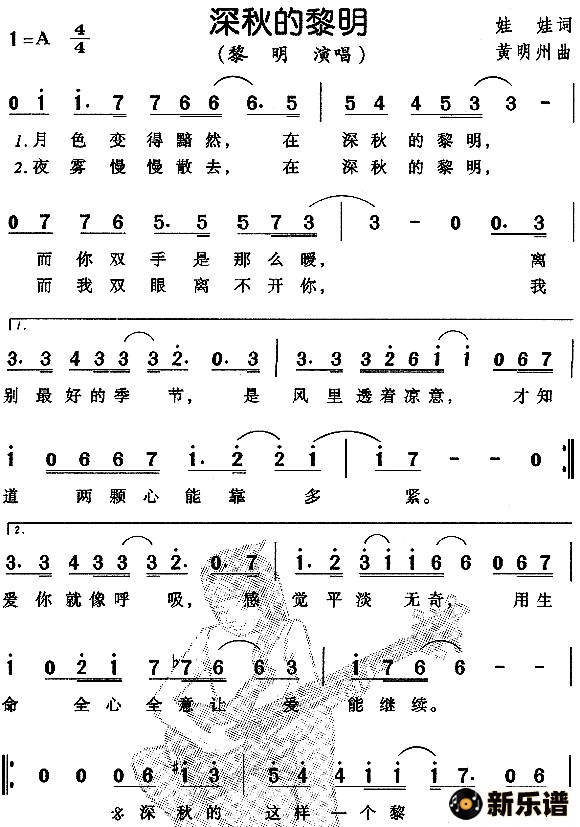 黎明演唱的深秋的黎明歌词,深秋的黎明简谱.