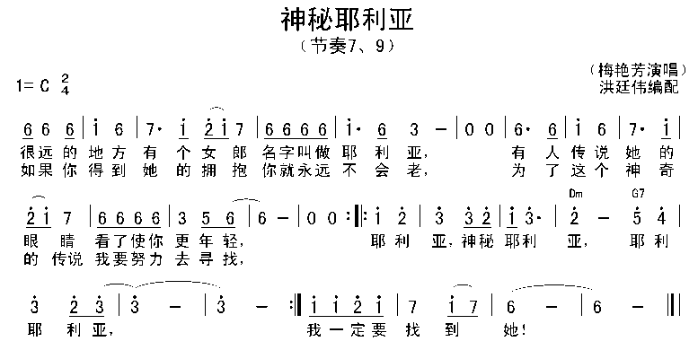 梅艳芳演唱的神密耶莉亚歌词,神密耶莉亚简谱.