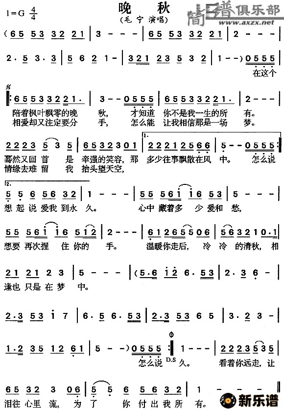 毛宁《晚秋》前奏版 老歌大叔吉他教室出品吉他谱