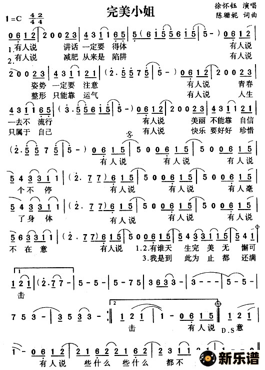徐怀钰演唱的完美小姐歌词,完美小姐简谱.