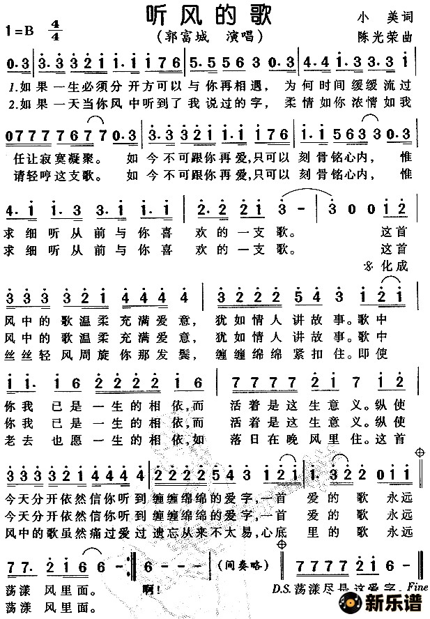 郭富城演唱的听风的歌歌词,听风的歌简谱.