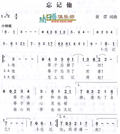 邓丽君演唱的忘记他歌词,忘记他简谱.