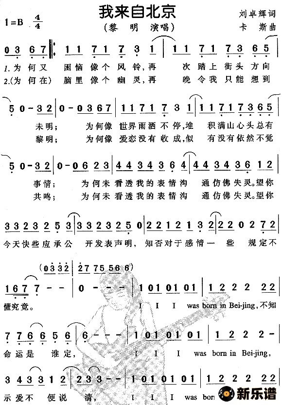 黎明演唱的我来自北京歌词,我来自北京简谱.