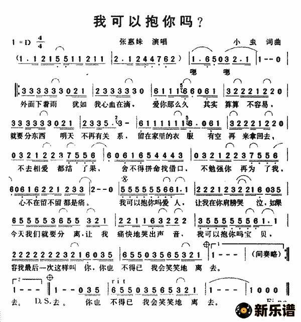 张惠妹演唱的我可以抱你吗歌词,我可以抱你吗简谱.