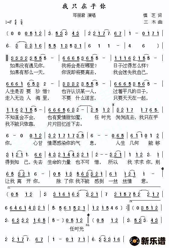 邓丽君演唱的我只在乎你歌词,我只在乎你简谱.