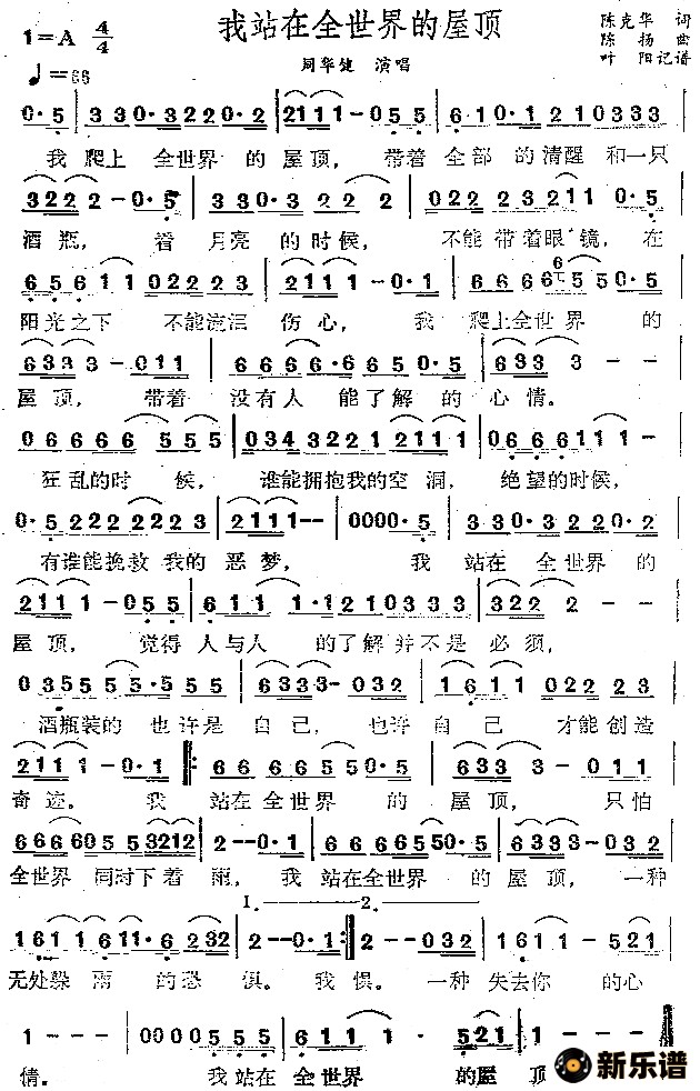 蓝蝎演唱的我站在全世界的屋顶歌词,我站在全世界的屋顶简谱.