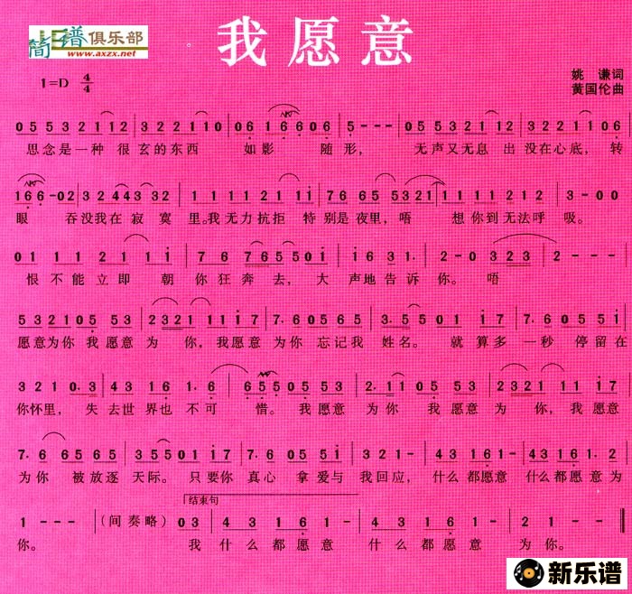> 我愿意简谱