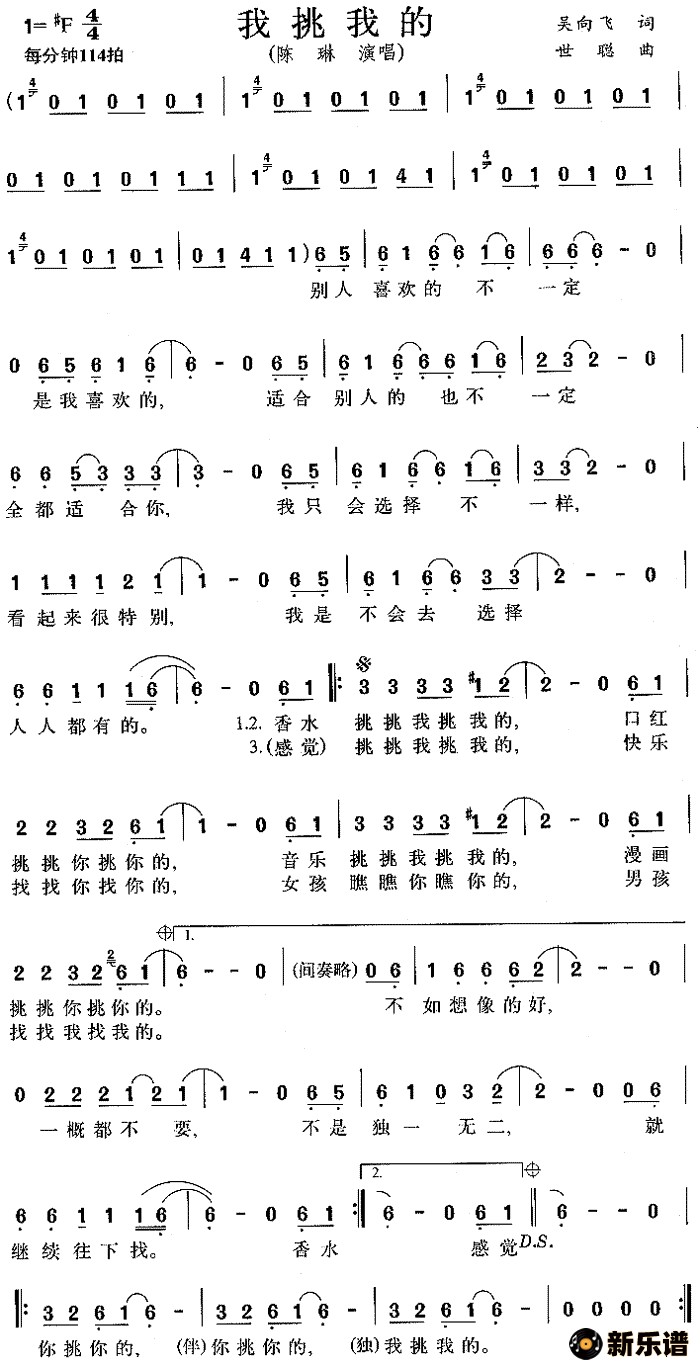 陈琳演唱的我挑我的歌词,我挑我的简谱.