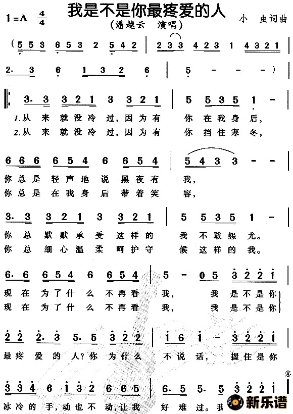 潘越云演唱的我是不是你最疼爱的人歌词,我是不是你最疼爱的人简谱.
