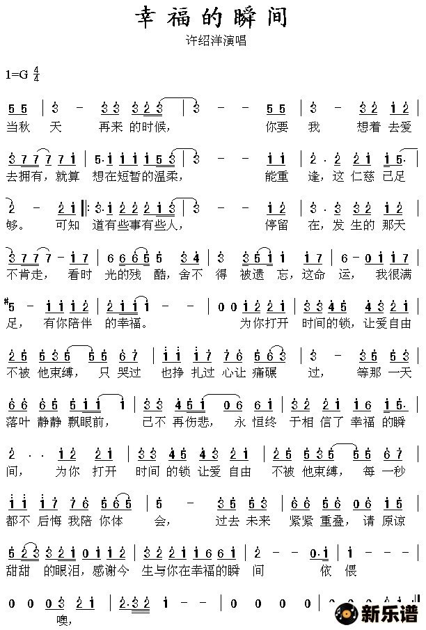 许绍洋演唱的幸福的瞬间歌词,幸福的瞬间简谱.