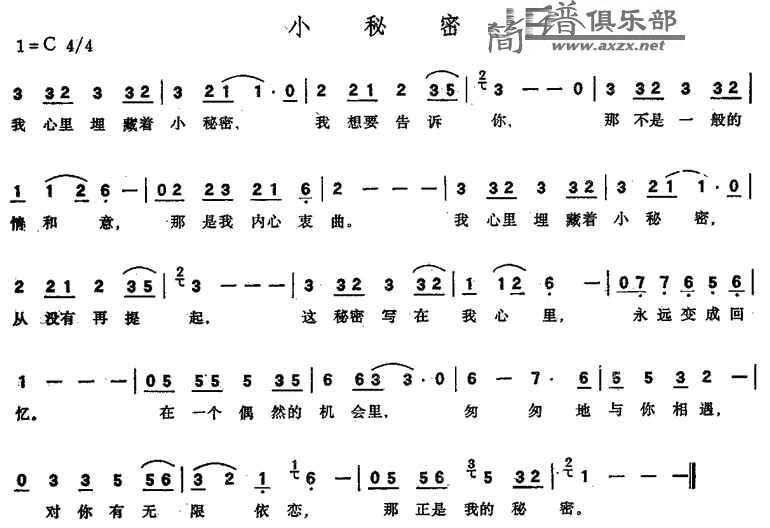演唱的小秘密歌词,小秘密简谱.