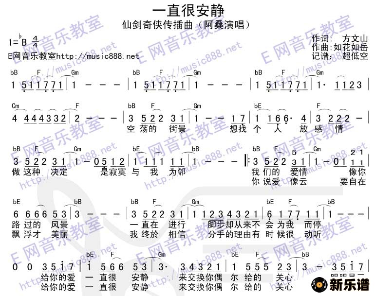 阿桑演唱的仙剑系列 一直很安静歌词,仙剑系列 一直很安静简谱.