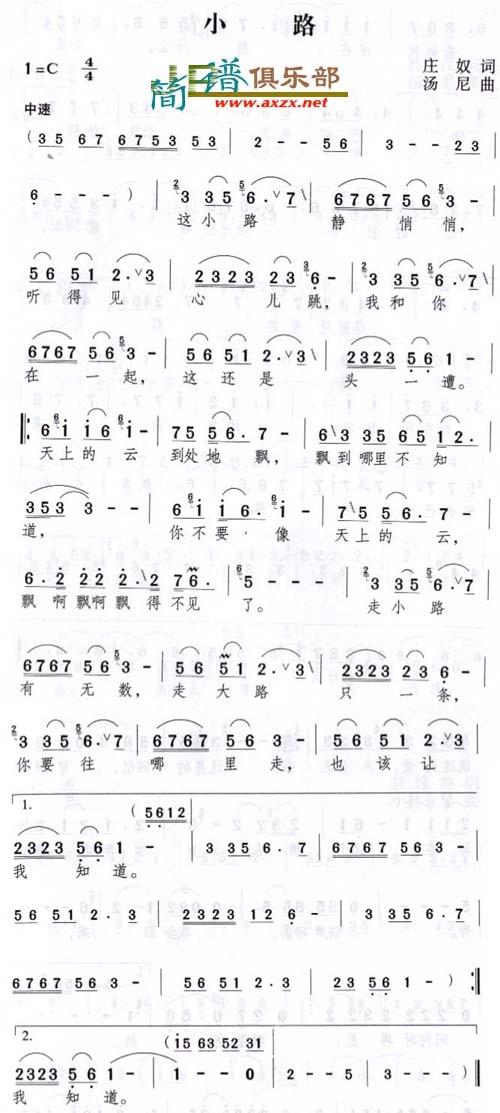 《小路》简谱 邓丽君