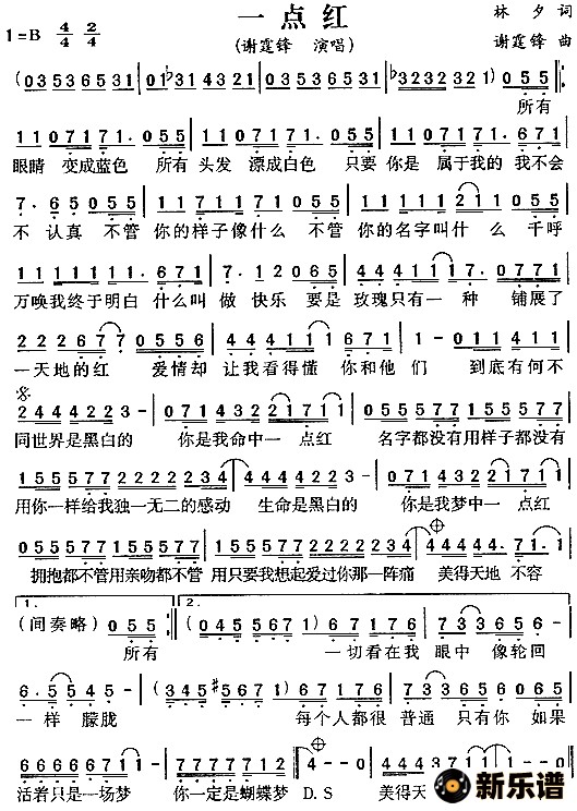 谢霆锋演唱的一点红歌词,一点红简谱.