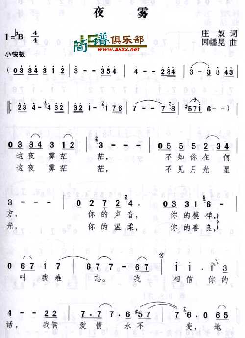 > 夜雾简谱
