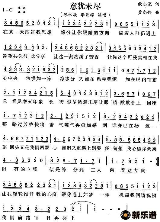 苏永康演唱的意犹未尽歌词,意犹未尽简谱.