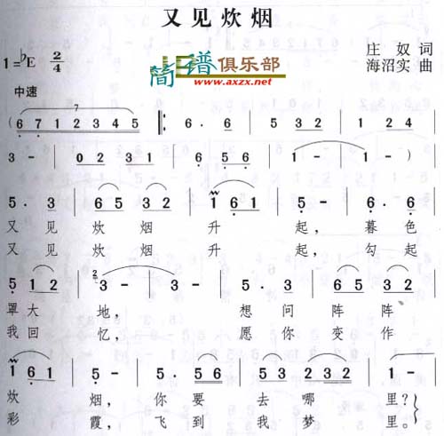 王菲演唱的又见炊烟歌词,又见炊烟简谱.