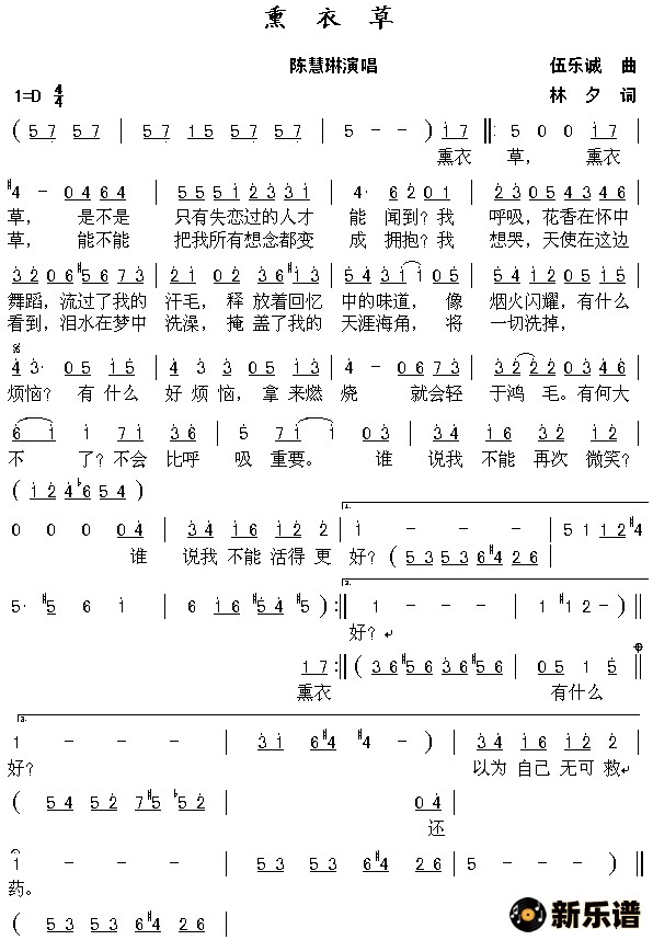 《熏衣草》简谱 陈慧琳