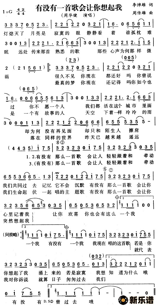 周华健演唱的有没有一首歌会让你想起我歌词,有没有一首歌会让你想起我简谱.