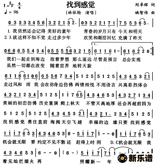 林依轮演唱的找到感觉歌词,找到感觉简谱.